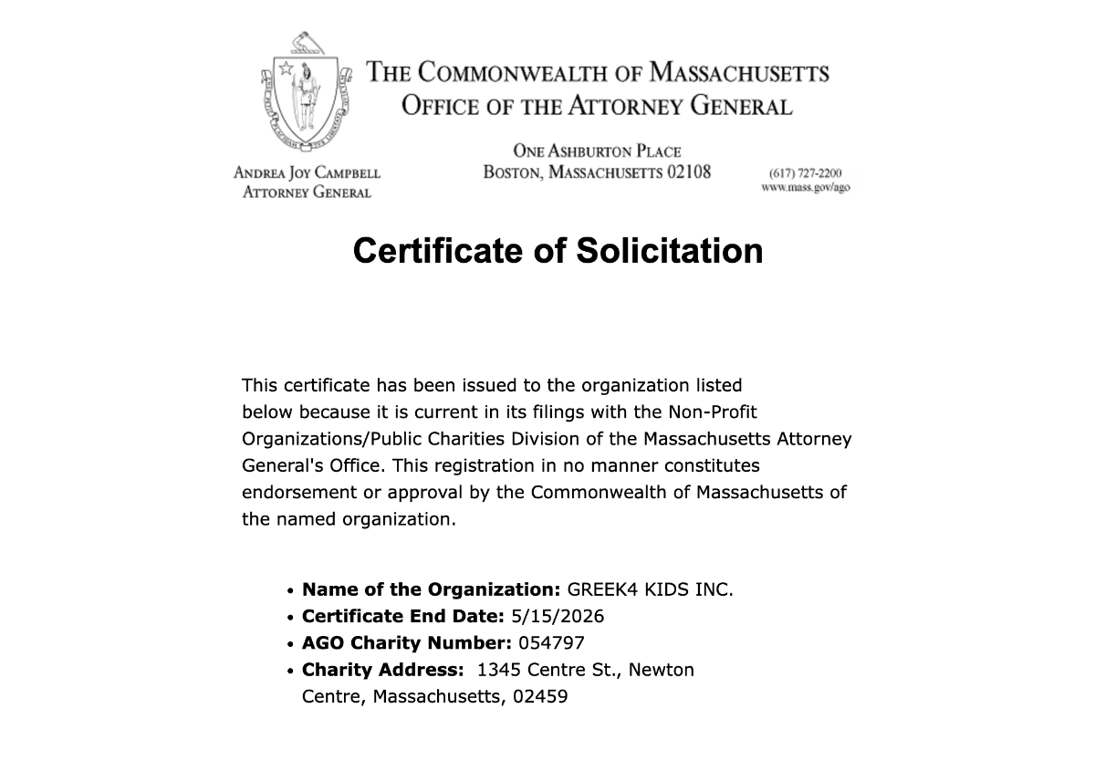 Greek 4 Kids is a non profit 501 (c) 3 tax exempt organization.